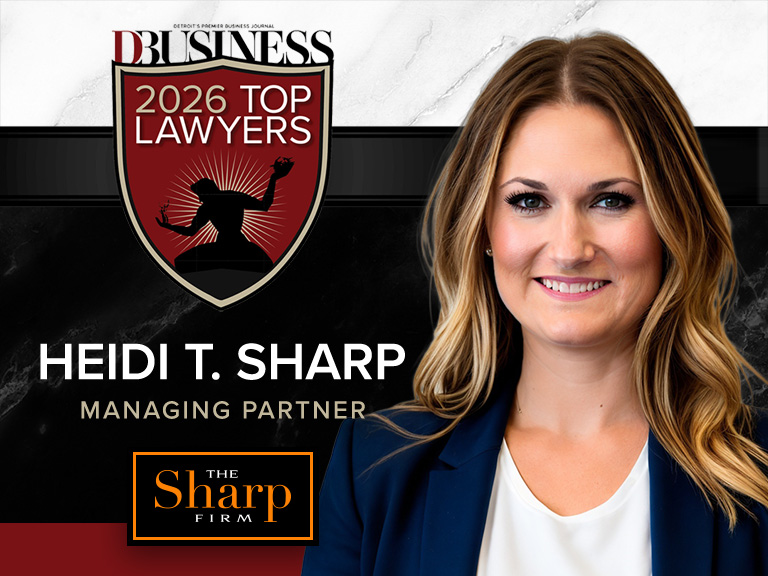 Ms. Sharp received top honors for the second year in a row with the awards, Top 100 Michigan Super Lawyers and Top 50 Michigan Women Super Lawyers.